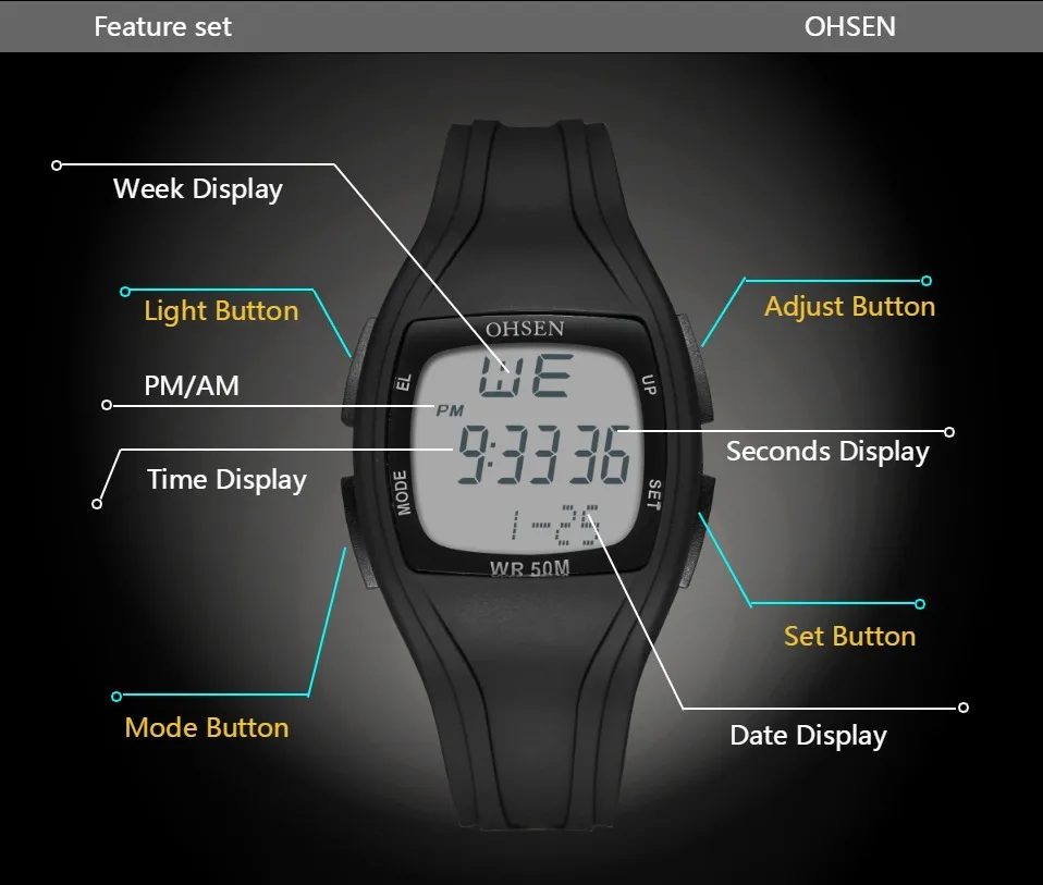 Feature: Stop Watch,Back Light,Shock Resistant,Chronograph,Water-Resistance,Alarm,swim