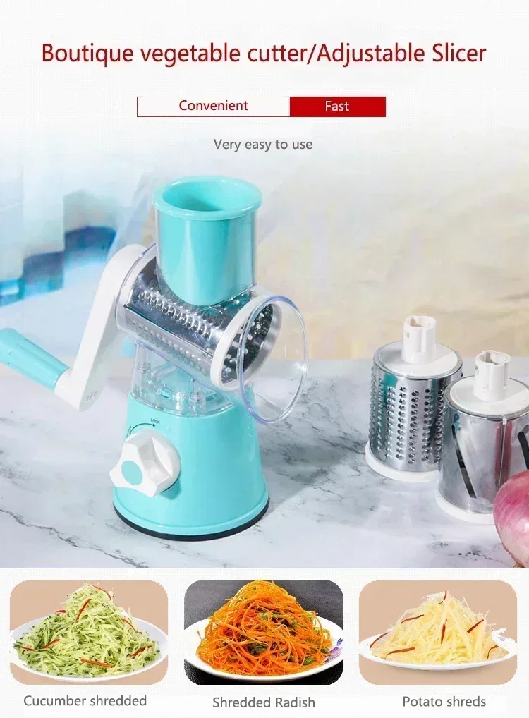 Kitchen Vegetable Chopper with 3 Sharp Drums Machine Rotary Hand Cranked Shredder Vegetable Cheese Slicer Household Kitchen Tool