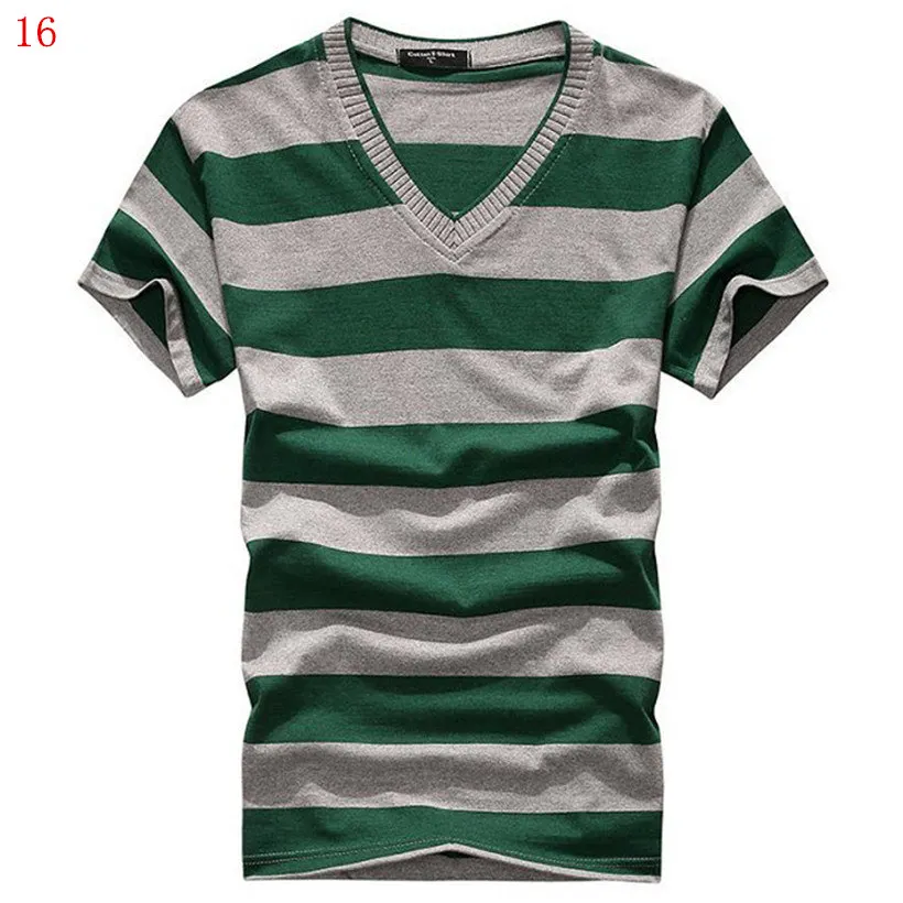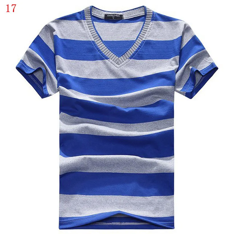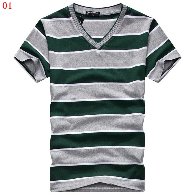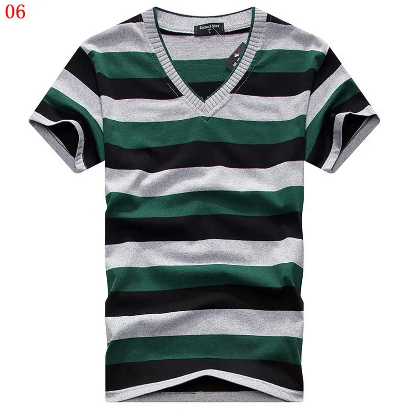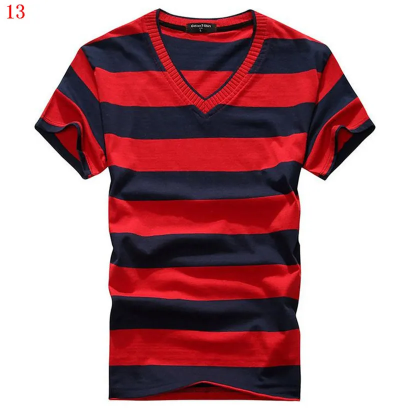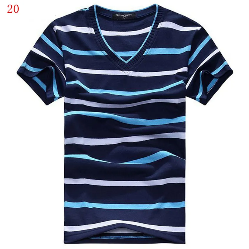 Male V-neck Tees Tops Men's Short Sleeve Tshirt Man Cotton Striped T Shirts Mens Clothing Multi Size