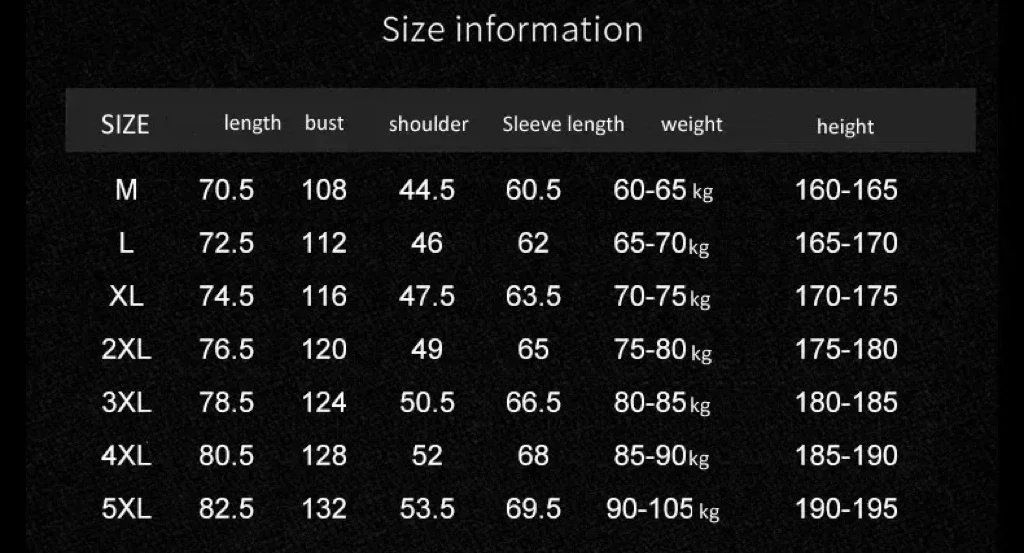size_info: {"sizeInfoList":[{"length":{"cm":"70.5","inch":"27.76"},"size":"M","vid":-1},{"length":{"cm":"72.5","inch":"28.54"},"size":"L","vid":-2},{"length":{"cm":"74.5","inch":"29.33"},"size":"XL","vid":-3},{"length":{"cm":"76.5","inch":"30.12"},"size":"XXL","vid":-4},{"length":{"cm":"78.5","inch":"30.91"},"size":"XXXL","vid":-5},{"length":{"cm":"80.5","inch":"31.69"},"size":"4XL","vid":-6},{"length":{"cm":"82.5","inch":"32.48"},"size":"5XL","vid":-7}]}