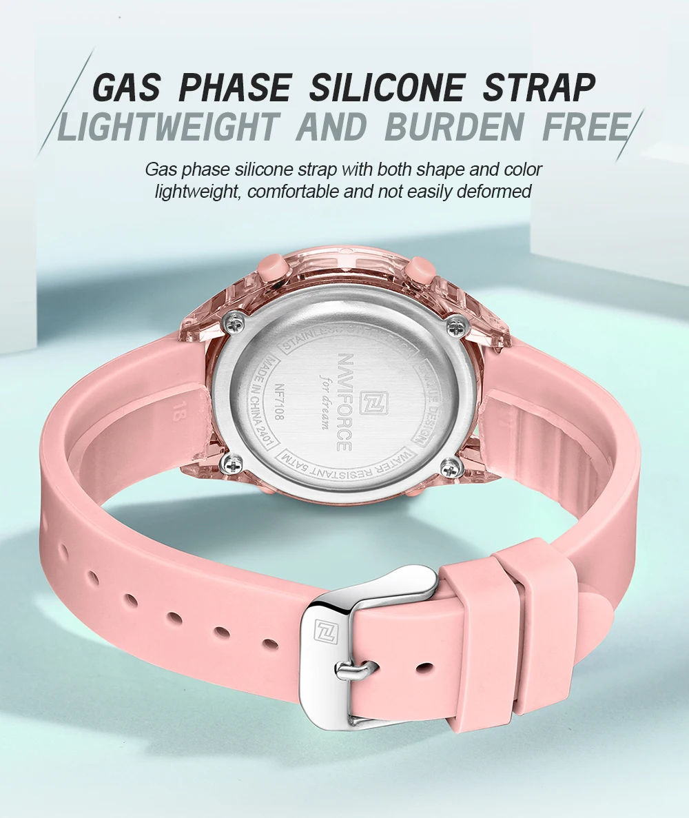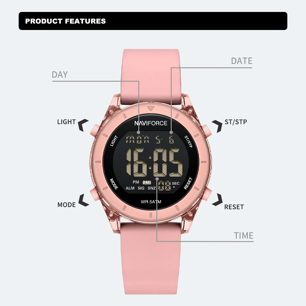 NAVIFORCE Comfortable Silicone Woman watch Waterproof LCD Display Clock Ladies Fashion Sport Electronic Wristwatches Reloj Mujer