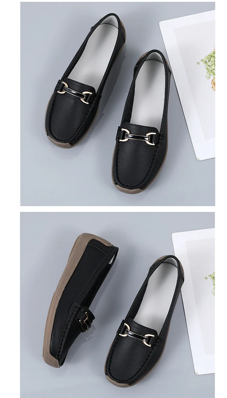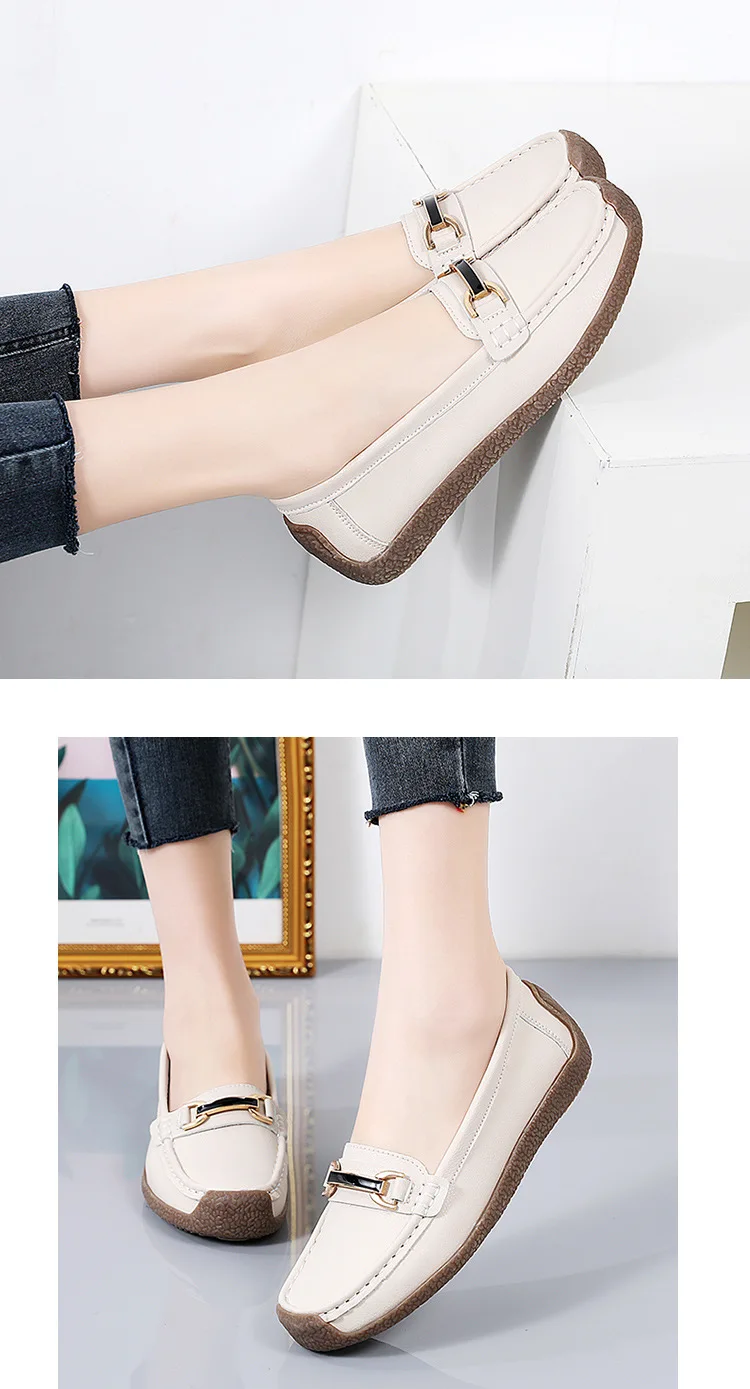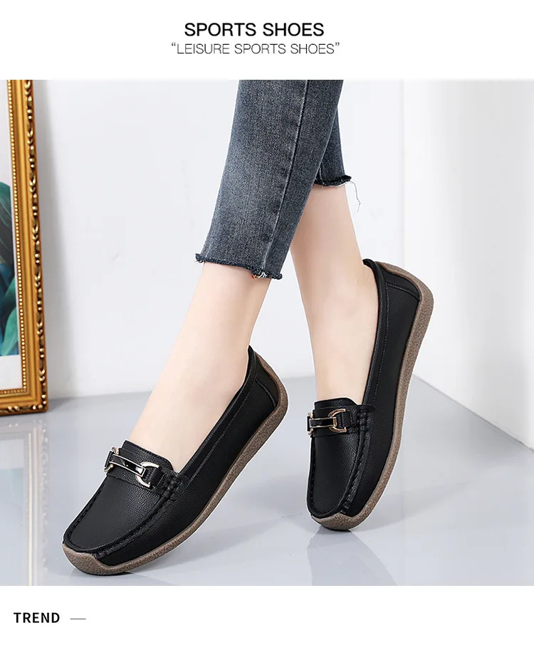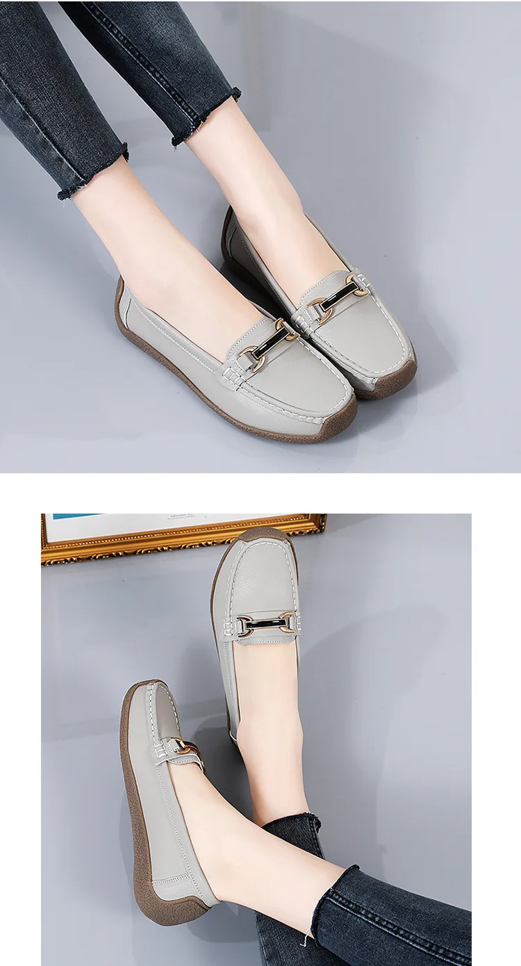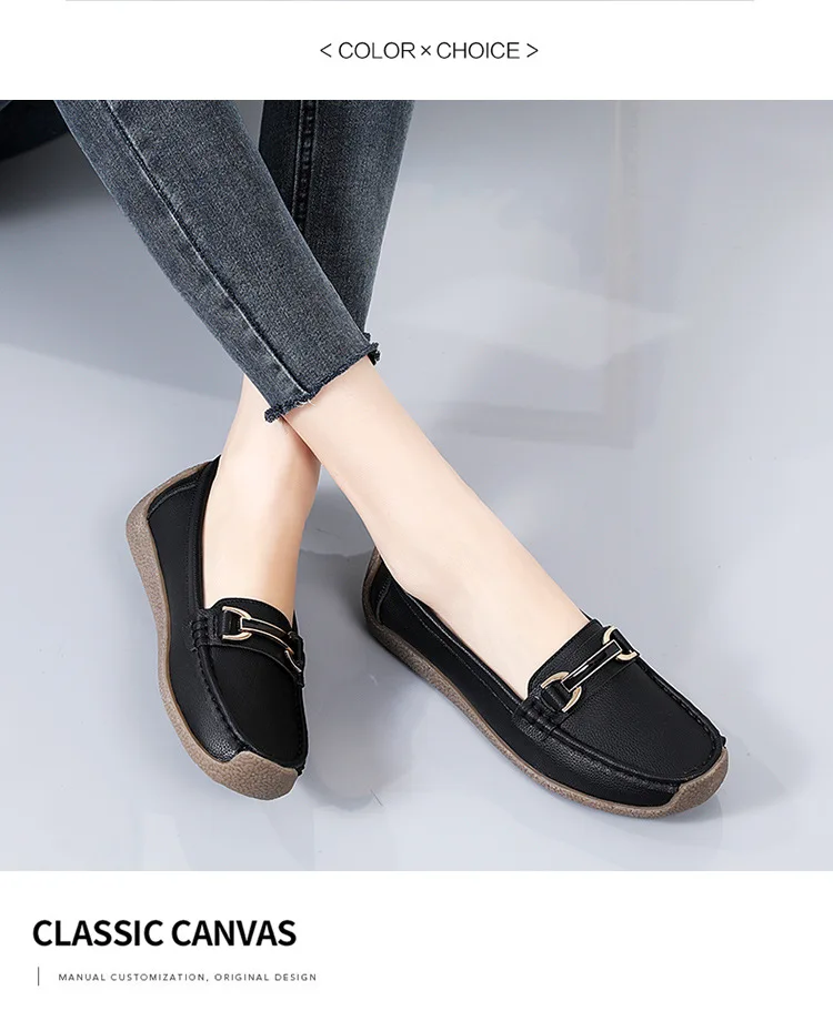 Plus Size 44 Women Flats Genuine Leather Slip Shoes for Woman