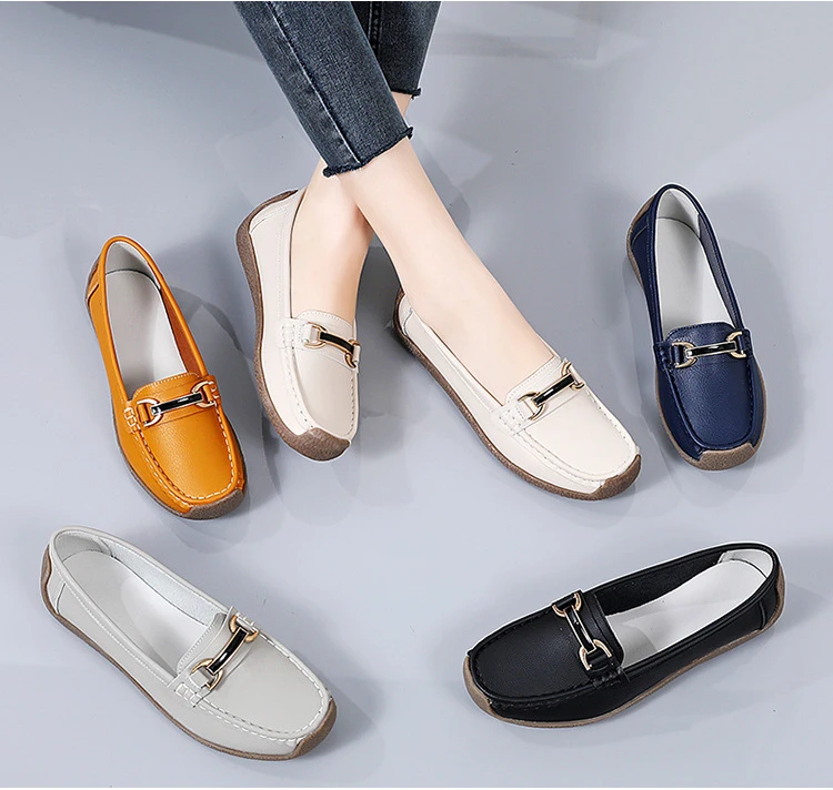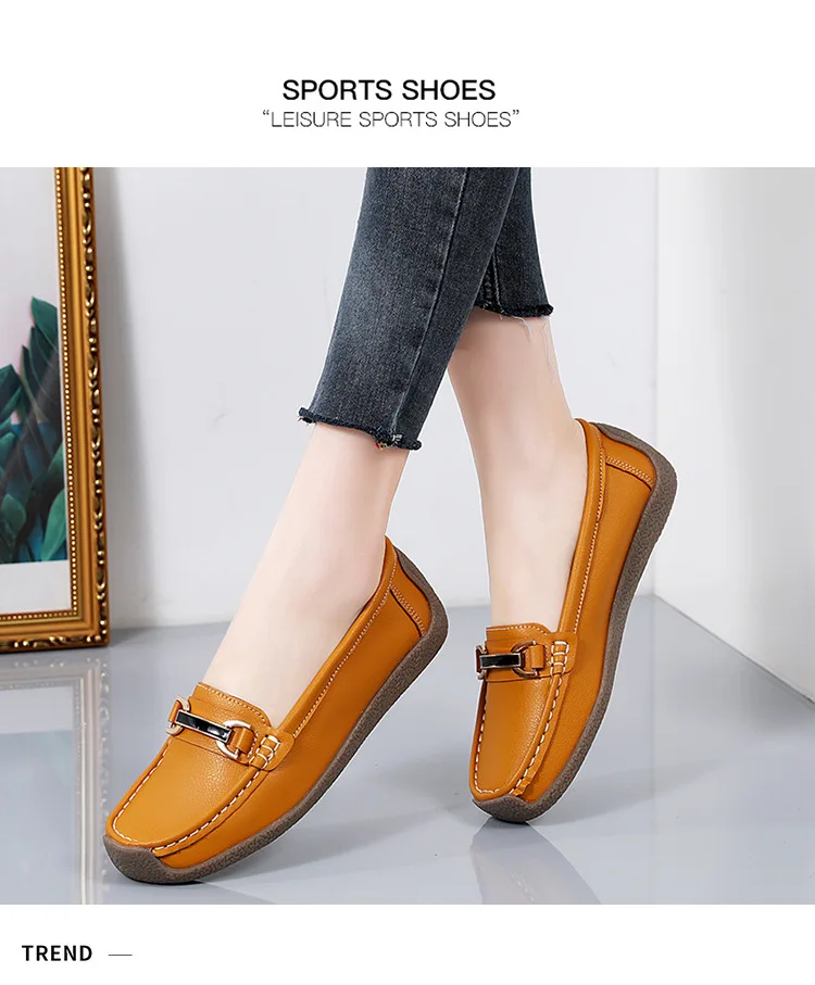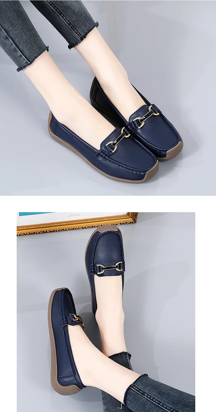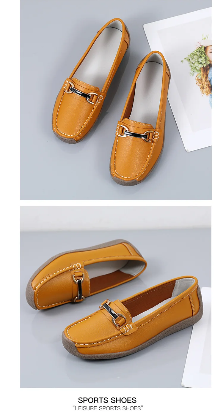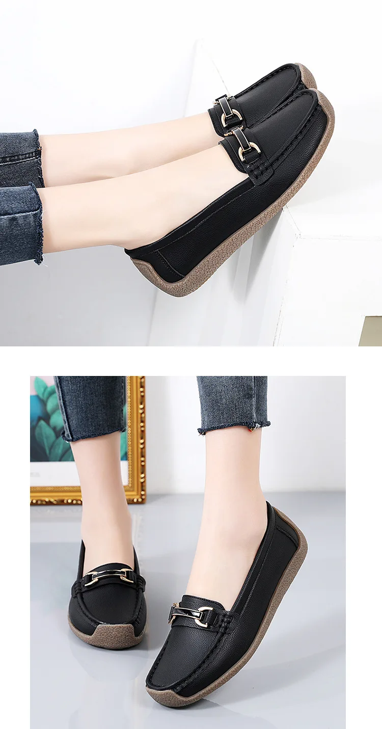 Plus Size 44 Women Flats Genuine Leather Slip Shoes for Woman
