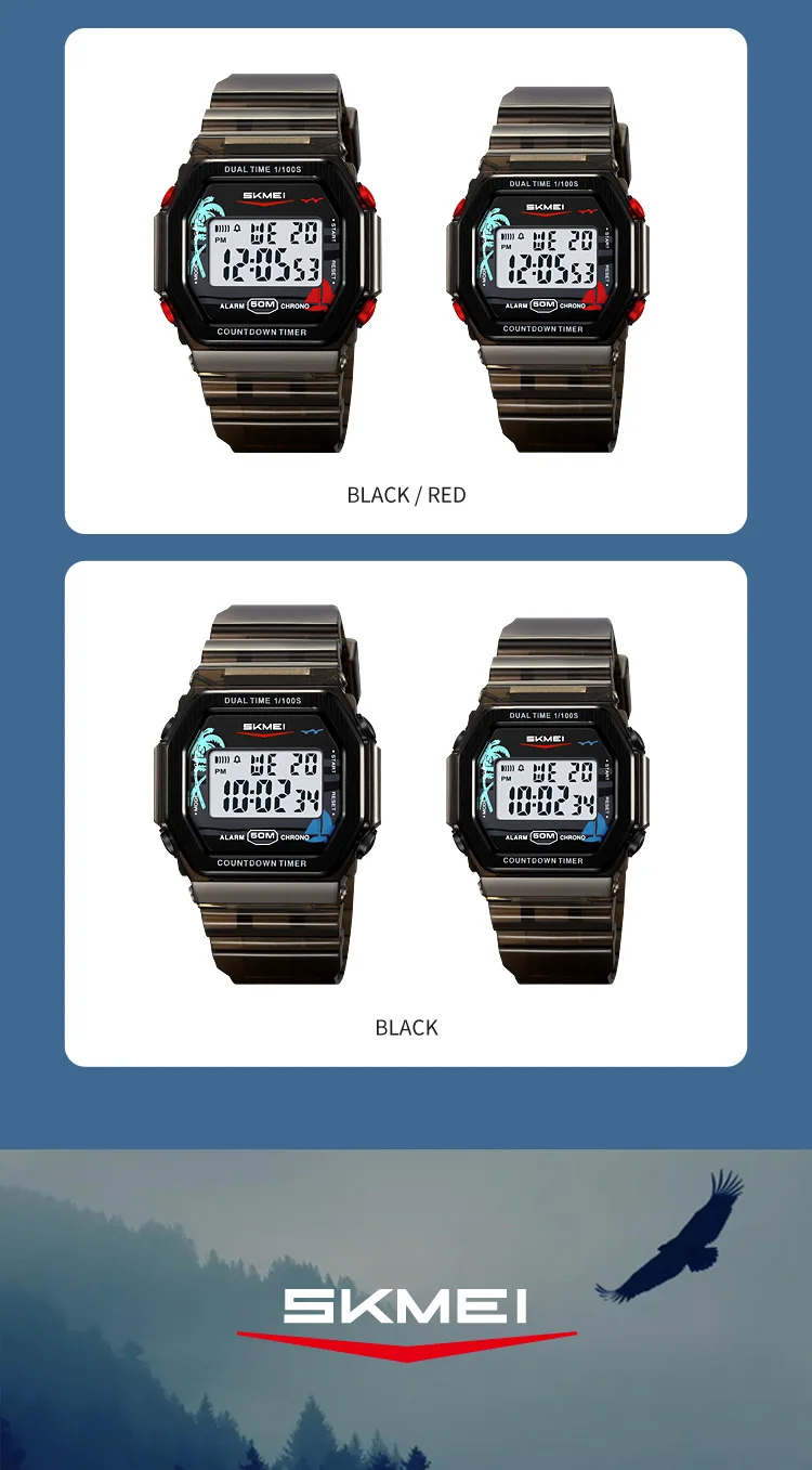 Feature: 2Time, Chrono, Alarm,Date, Week, EL Light,Count down timer.,Stop Watch,Shock Resistant,Led Display,Repeater,Auto Date,Water-Resistance,Alarm,Week Display