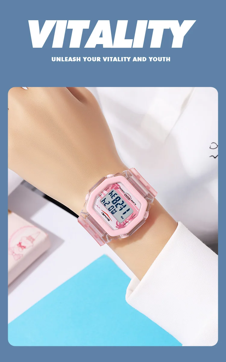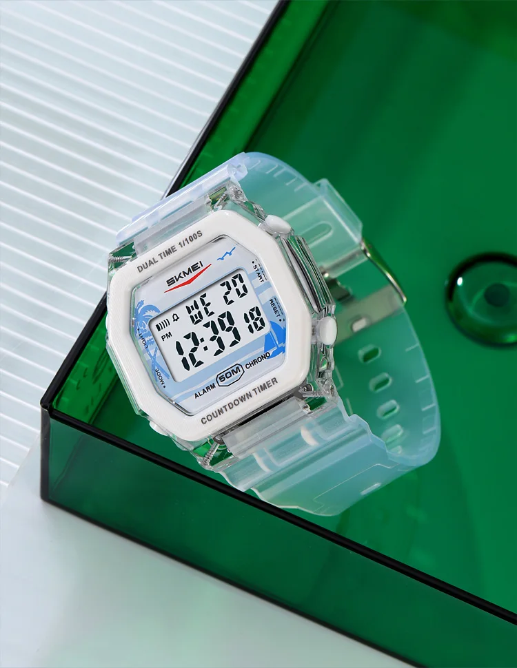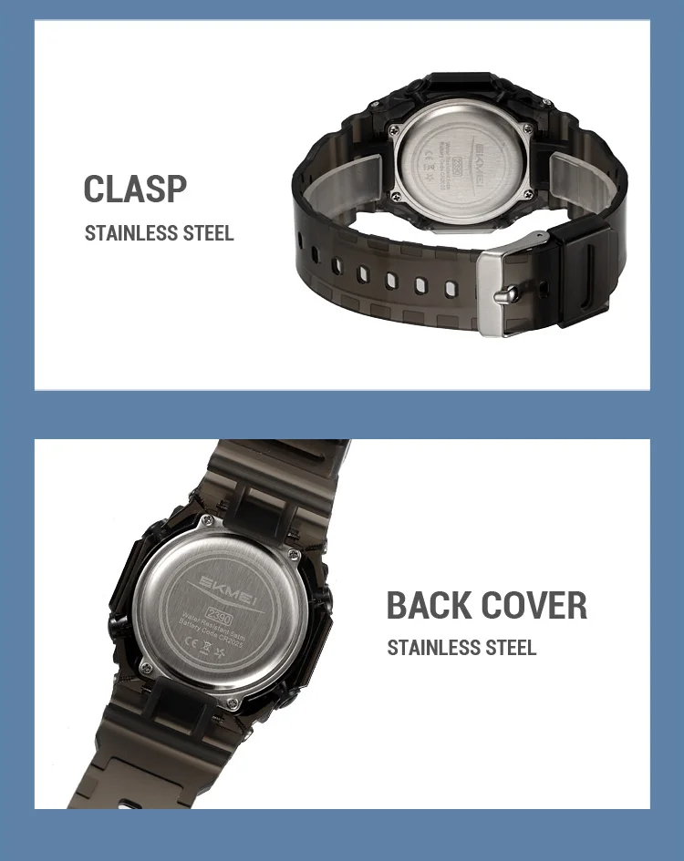 8.Function:2Time, Chrono, Alarm,Date, Week, EL Light,12/24 hour clock,Count down timer.