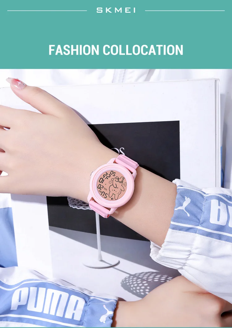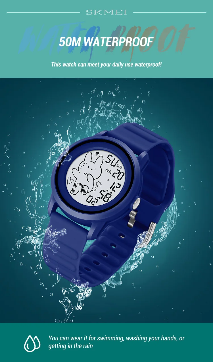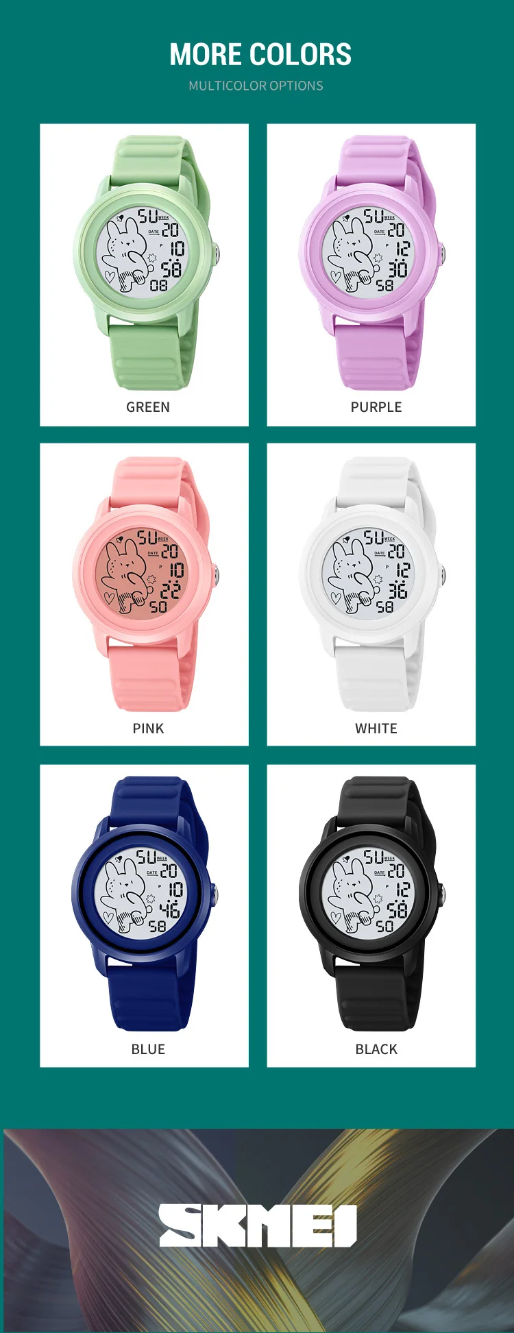 Skmei Led Waterproof Swimming Watches Fashion Silical gel Strap Simple Design Women Casual Digital Wristwatch 12/24 Hour Alarm Clock