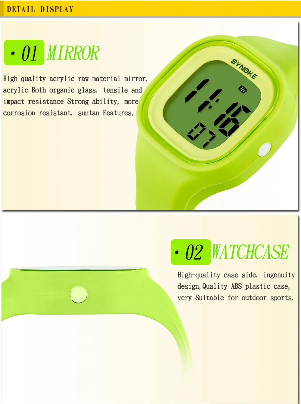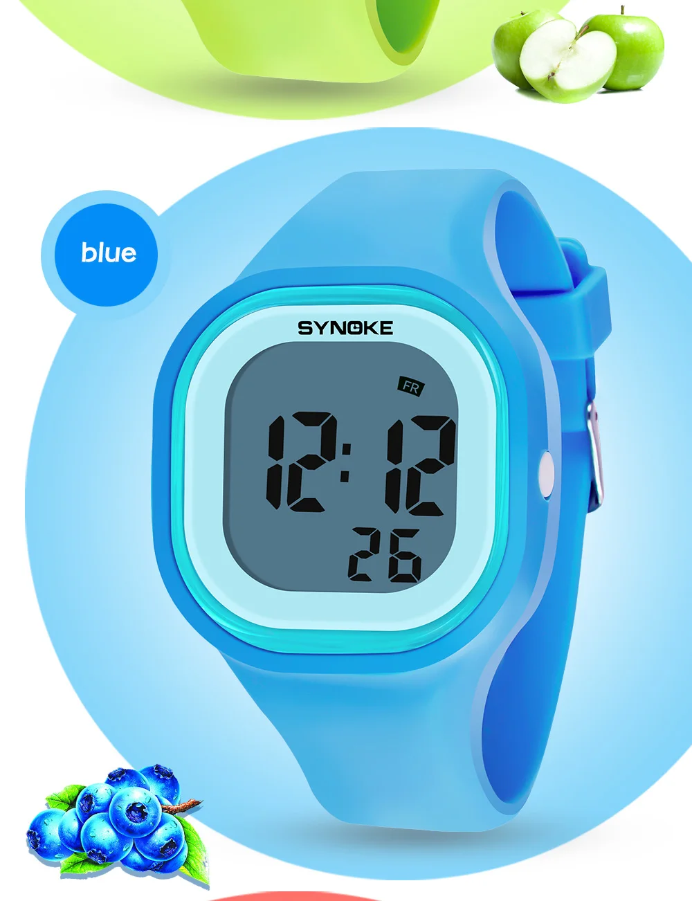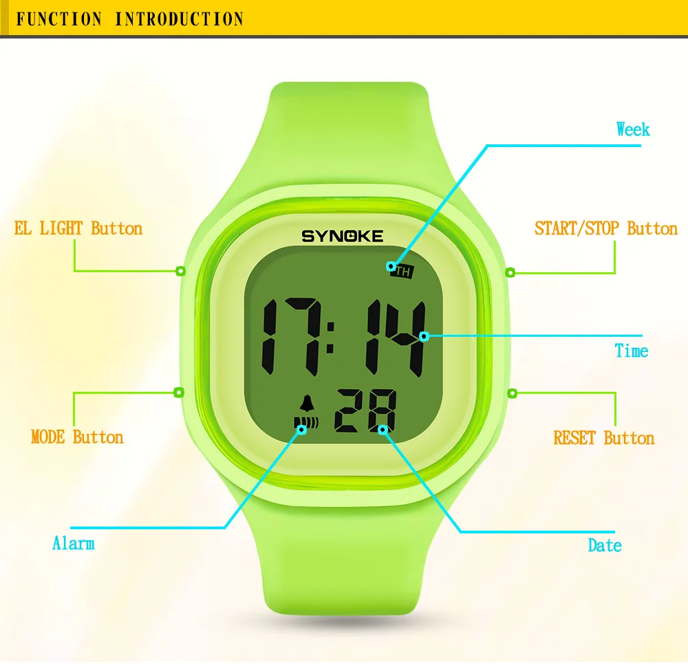 Synoke Unisex Digital Sport's Watch Soft Silicone Strap 50m Waterproof Swimming Women's Led Jelly Wristwatch Fashion Multifunctional Alarm Clock