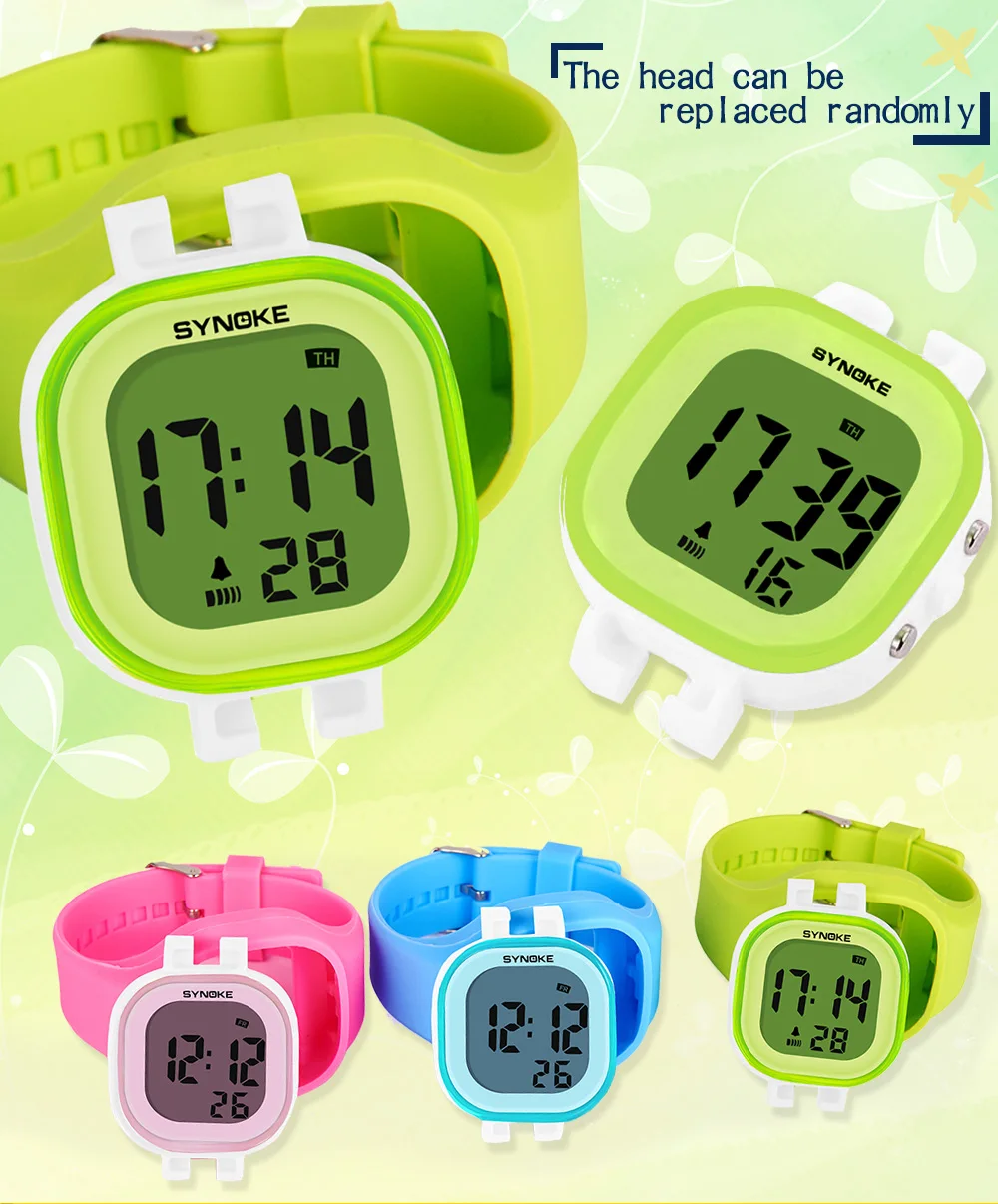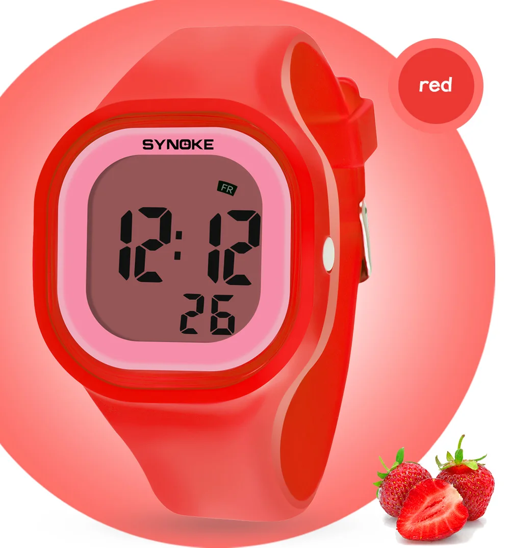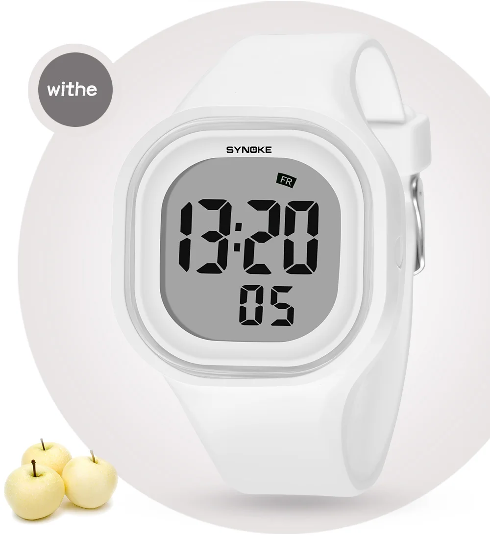Synoke Unisex Digital Sport's Watch Soft Silicone Strap 50m Waterproof Swimming Women's Led Jelly Wristwatch Fashion Multifunctional Alarm Clock