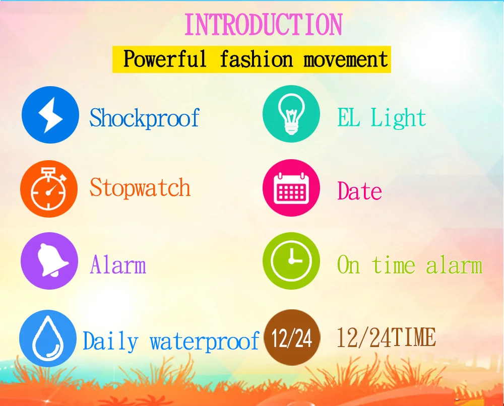 ▪ Function: Time, Alarm, Shockproof, Led light, Chronograph, Date, Week, 12/24 Hour format,Chime